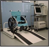 ベルトコンベア状の踏み台をモーターの力で動かし、速度・勾配を設定・調節し、車椅子、歩行器などの評価・歩行状態の把握する。